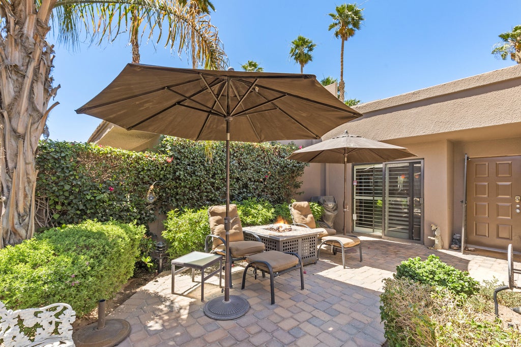 ONLY oversized 1,343 SqFt Jacaranda on the market. Updated golf course condo. Lovely views of the Championship course, with distant mountain views from the family room, primary bedroom and rear patio. Features front courtyard patio and also a spacious rear patio with golf course views. Rich cabinetry with plenty of built ins and wine refrigerator. Newer roof, smooth ceilings, slab granite kitchen counters with outdoor access for easy Al Fresco dining. Baths redone with granite counters. Proudly entertain on the picturesque interlocking brick golf course view patio, or on the private upgraded courtyard patio. Golf cart INCLUDED! Palm Valley Country Club is a guard gated community with the look and feel of a vacation resort. The community's private golf club includes 2 Ted Robinson designed golf courses and 100,000 sq ft clubhouse with bar, lounge and restaurant, fitness center, spa, resort style pool area, proshops, practice facilities and 16 tennis courts. There are also 46 pools and spas. EXCELLENT primary, part-time or VACATION RENTAL property. The current long term tenant (at $2,700. monthly + utilities) has been a dream and would love to stay on long term if the new owner desires. Short term rentals are allowed in Palm Valley Country Club; ''The Fun Club for ALL ages.'' PLEASE NOTE: TENANT OCCUPIED. SHOWINGS BY APPOINTMENT ONLY AND ONLY TO SERIOUS BUYERS. CONTACT LISTING AGENT.