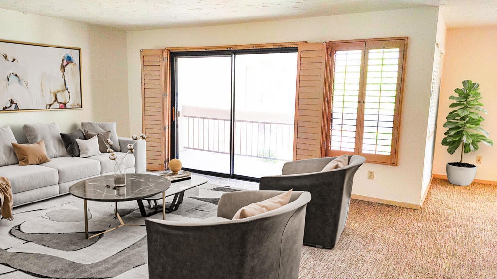 Outstanding value just reduced for a quick sale! This Lovely gated community of Canyon Shores is on fee simple land , nestled on over 16 acres of beautifully landscaped grounds in Cathedral City near all conveniences and minutes from downtown Palm Springs and its airport. This lovely condo has beautiful mountain, golf course and sunset views! It boasts 5 pools, 7 spas, a well equipped clubhouse that includes pickleball courts, community gym, 7 tennis courts, and many walking trails with water features throughout. This top floor 2 bed/2 bath is located in a prime location overlooking the golf course. This is a fabulous investment property that affords short term rentals (7) day minimum stay, making it a great choice for both investors and residents. This lovely condo is the best value in the valley for resort living. You don't want to miss this lovely home!