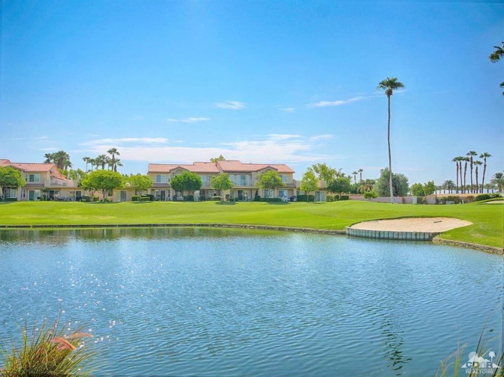 One bedroom, one bath lower level condo with golf course, mountain and lake views. The condo has a stackable washer & dryer inside condo and a one car garage. One of the community pools is right across the street. Palm Royale is a gated community within walking distance to Indian Wells Tennis Gardens. Unlimited golf is included in the HOA dues on the Ted Robinson designed par-3 golf course. This is the Valley's Premier Short Course! Clubhouse & Pro Shop. Minutes from destination golf, dining & shopping. Community amenities include 6 pools & spas, lighted pickle ball and tennis courts and Helix Disc Golf. HOA fees also include basic cable,and internet, landscape maintenance, & trash service.