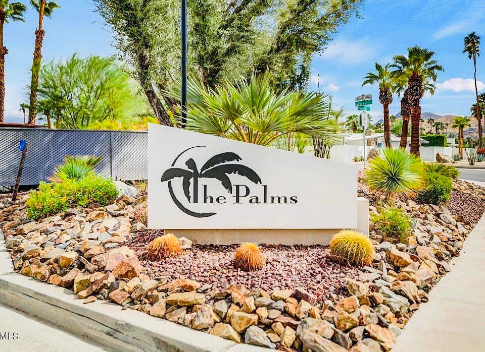Welcome to The Palms, a gated and architecturally significant community in the coveted Little Beverly Hills neighborhood of Palm Springs. This beautifully maintained 2-bedroom, 2-bathroom condominium blends iconic mid-century design with modern comfort, all within minutes of vibrant downtown Palm Springs.Designed by famed architect Hugh Kaptur, this 1,230 sq. ft. unit offers a bright, open layout and tasteful finishes throughout. Enjoy abundant natural light from skylights in both the entryway, master and guest bathroom, and take in stunning south-facing mountain views from your living room balcony. A second private balcony off the primary bedroom offers a peaceful retreat with north-facing views.The kitchen features granite countertops and stainless steel appliances, and the unit includes a washer and dryer for added convenience. Offered fully furnished, this home is truly move-in ready--ideal for a full-time residence, vacation home, or to add to your rental empire.Community amenities include:Two sparkling swimming poolsTennis and pickleball courtLush landscaping and well-maintained groundsGated entry for privacy and securityAll of this just 5 minutes from downtown Palm Springs, where you'll find world-class dining, shopping, and entertainment.
