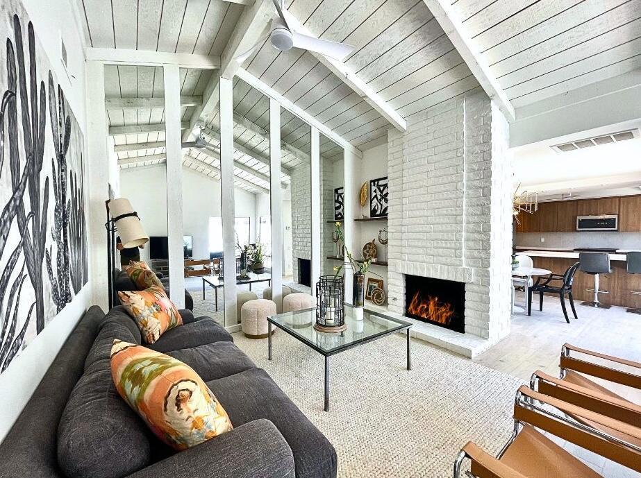 Beautifully Remodeled 2BD/2BA Condo in Canyon Sands, Prime Location with nearby Guest parking. Welcome to your Desert Retreat in the highly desirable Canyon Sands community of South Palm Springs! This move-in ready Home is perfectly situated on a quiet interior lot at Linden Way and Seven Lakes Drive, just steps from one of the community's largest pools. Recently renovated with new kitchen, bathrooms, luxury Vinyl flooring, and patio landscaping, this stylish unit features: Dramatic wood-beam Cathedral ceilings , Modern fireplace in the spacious living area with abundant natural light throughout. Updated kitchen with ample storage and direct access to a private patio ideal for entertaining or quiet relaxation, attached two car garage with extra storage and direct entry into the kitchen/dining area. Primary Bedroom with ensuite bath and patio access. Whether you're looking for a weekend getaway or a full-time home, this property offers a perfect blend of comfort, style, and location just minutes from Downtown Palm Springs, PSP Airport, and all that the Coachella Valley has to offer. Community Amenities Include: 7 saltwater pools & spas 2 saunas 5 championship tennis courts (2 lighted) 3 lighted pickleball courts 33 acres of beautifully landscaped grounds in the Melody Ranch neighborhood. Lease land. Buyer to verify all information.