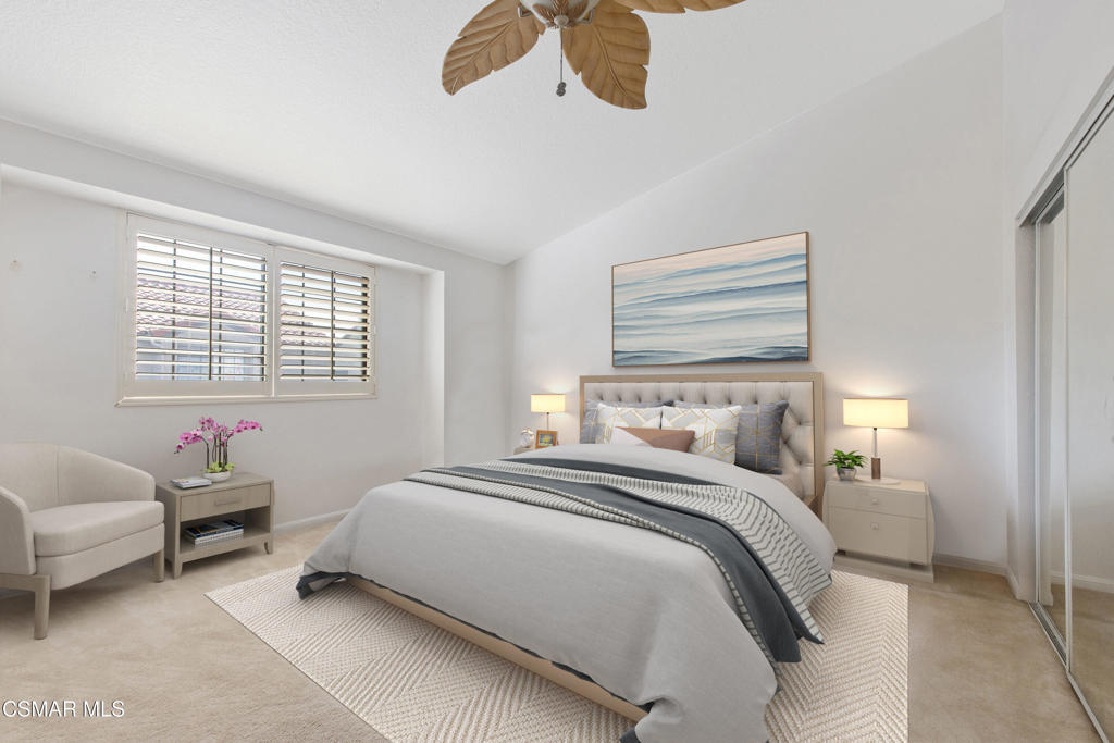 Open and charming end-unit townhome in desirable Yosemite Villas with private yard. Cul-de-Sac location tucked away & not backing or facing any busy streets.Don't miss this rare opportunity to own a beautiful 2-bedroom, 3-bath end-unit townhome in the sought-after Yosemite Villas of Simi Valley! This inviting home boasts a private entry and one of the largest patio/yard area in the complex, perfect for relaxing or entertaining.Step inside to discover a spacious eat-in kitchen with a breakfast bar, garden window, ample storage, and generous counter space, all opening seamlessly to the formal dining area and living room featuring vaulted ceilings and a cozy fireplace.Upstairs, you'll find a well-designed primary suite with a remodeled en-suite bath, while the secondary primary bedroom enjoys a full hall bath with dual sinks. Plantation shutters adorn most windows, adding charm and privacy.Additional highlights include direct access to a 2-car garage and a fully fenced yard with incredible fruit trees! With only 20 units in the complex, this home is truly a rare find. Enjoy easy access to shopping, dining, and the 118 freeway.This gem won't last long!