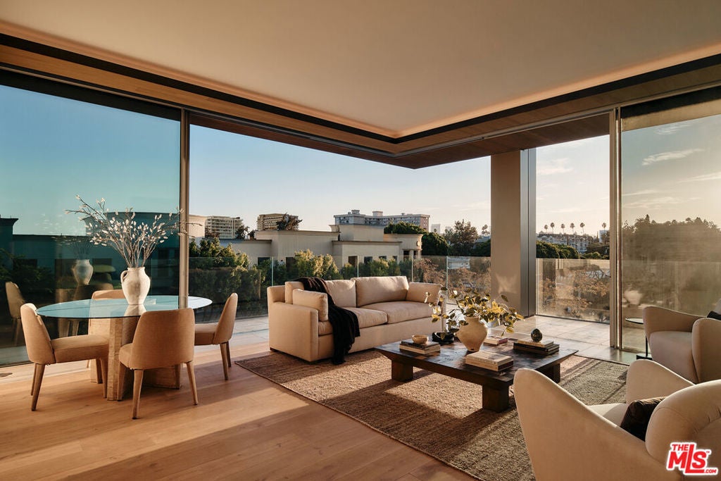 Residence 5C at 8899 Beverly is a meticulously crafted two bedroom, 2.5-bathroom home offering 2,004 square feet of exquisite living space, situated on the sunny southwest corner of one of Los Angeles' most iconic buildings. Designed with livability and sophistication in mind, the thoughtful floor plan provides ideal privacy, with each bedroom suite occupying opposite corners. A separate laundry room adds convenience and functionality to the layout.The primary suite offers two spacious walk-in closets and access to a private terrace. The en-suite bathroom boasts Italian travertine stone flooring, walls, and countertops, with chrome Dornbracht fixtures and an Agape Spoon XL soaking tub positioned beneath floor-to-ceiling windows. Ceilings soar up to 11', while Swiss-made Vitrocsa operable glass window walls create a seamless connection between the indoor living space and the wraparound terrace. The custom chef's kitchen features white oak cabinetry, Italian Calacatta gold marble, and top-of-the-line appliances by Gaggenau, Sub-Zero, and Miele, ideal for both casual meals and entertaining.Residents enjoy a serene, lushly landscaped pool area surrounded by private gardens, offering an oasis of calm in the heart of the city. The outdoor kitchen, dining areas, and cozy fireplace lounges nestled within the garden spaces are perfect for relaxation and social gatherings. Situated in the vibrant heart of West Hollywood's Design District, this residence is just moments from the city's finest dining, shopping, and cultural destinations. Whether exploring the neighborhood or retreating to the peaceful sanctuary of your home. The building's 24 hour valet and concierge services reflect the highest level of residential care. Designed by Olson Kundig as a "love letter to Los Angeles," 8899 Beverly is recognized as the finest residential building in the city, redefining modern luxury with a masterful blend of artistry, innovation, and timeless design.