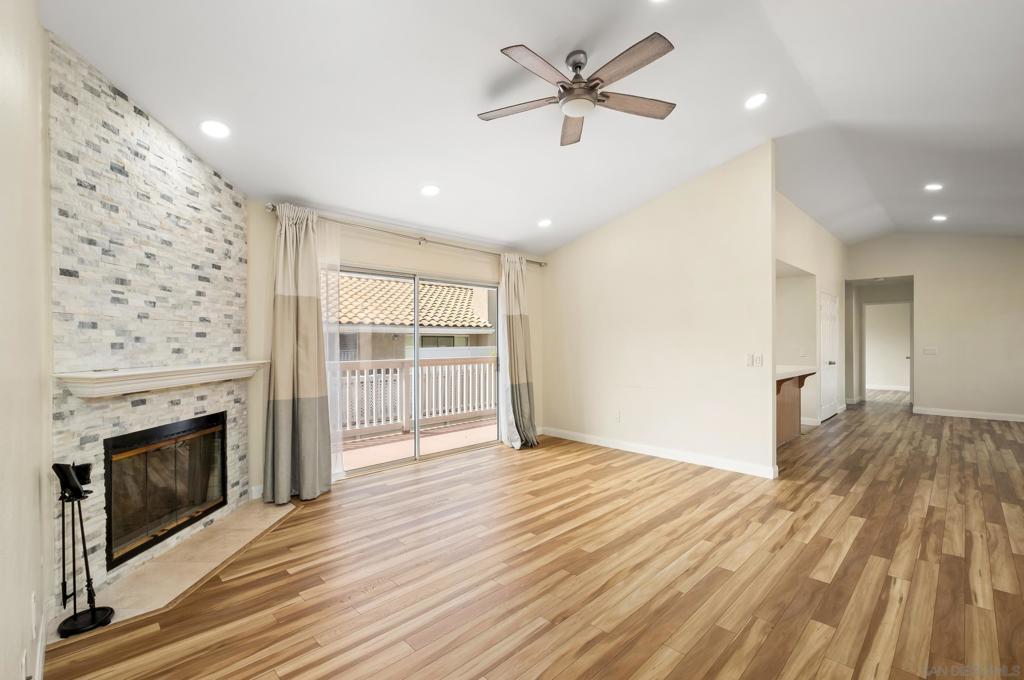 Welcome to Vista Palomar: small community of only 40 units! Full of sunlight large townhouse with vaulted ceilings in living room. Located on a second floor with nobody above you. Huge master with vaulted ceiling, dual sinks & walk-in closet. 2 other bedrooms are on separate wings, bringing desired privacy. Big balcony (around 200 sq ft) for your morning coffee brake. Indoor laundry room with newer washer/dryer, next to the unit entrance. Newer laminated flooring throughout. Ergonomic kitchen with stainless steel fridge, stove/range, dishwasher, microwave. 2 full bathrooms. For colder nights why not use fireplace with modern quartz ornament? AC installed on a ground outside, avoiding any noise. All gas appliances. Heater & water heater 3 years old. Recessed lightning. Ceiling fans/lights in all rooms. Detached 2 car garage just few feet from the condo: enough space to store your treasures. Garage door & motor around 1 year old. Clubhouse, swimming pool & spa close by to enjoy amazing summer. FHA/VA approved complex. Rarely on a market!