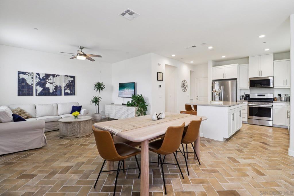 Experience the allure of 511 Surfbird Ln, a modern and inviting home in Imperial Beach’s vibrant Bayside Landing community, where short-term vacation rentals are welcome. This residence boasts a bright, open living area with stylish glazed porcelain tile flooring in a herringbone pattern throughout the first floor. The kitchen, a true centerpiece, features sleek quartz countertops, stainless steel appliances, a large island, and a breakfast bar perfect for morning coffee or casual get-togethers. Upstairs, cozy carpeted bedrooms are linked by engineered white oak hardwood flooring on the stairs and hallways, with the expansive primary suite offering a serene escape, complete with a luxurious bathroom and ample walk-in closet. High ceilings and abundant natural light create a fresh, airy ambiance throughout. The spacious 2-car garage includes a 240V EV charger, providing ample space for vehicles and storage. As part of the VA-approved Bayside Landing, residents enjoy a community pool, relaxing spa, playground, and BBQ grills, ideal for outdoor enjoyment. Steps from the scenic San Diego Bayside Bike Path, stretching from National City to Coronado, this home is perfect for outdoor lovers. With beaches, downtown San Diego, military bases, parks, and local dining just minutes away, 511 Surfbird Ln blends coastal convenience, modern comfort, and the flexibility of short-term vacation rentals.