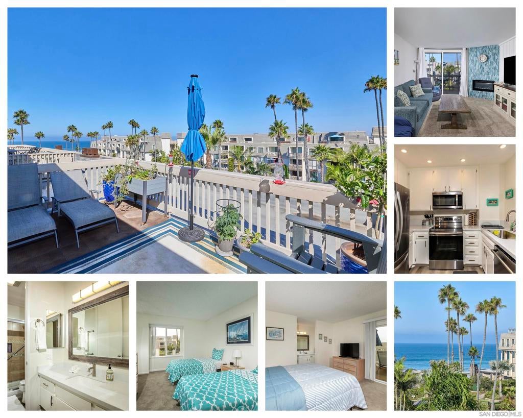 Experience coastal living at its finest in this beautifully remodeled beach condo, perfectly positioned in the highly sought-after North Coast Village. Enjoy dynamic ocean views from both balconies, with the expansive upper balcony offering the perfect retreat to watch sailboats drift by and catch glimpses of sea life. Spanning the 3rd and 4th floors of the desirable C building, this residence features a stylish living area with a stunning waterfall tile fireplace and tasteful furnishings, including a queen sofa bed, recliner, and chair—creating both comfort and elegance. The kitchen offers boasts sleek countertops, wood-look flooring, and stainless appliances. North Coast Village offers an unbeatable resort-style lifestyle, complete with two heated pools and spas, putting green, ocean-view BBQ area, and lush tropical landscaping throughout. Stay active in the fully equipped gym, unwind in the saunas, and enjoy the peace of mind that comes with 24-hour gated and guarded security. Reserved garage parking is also included. Best of all, this home is being sold fully furnished, making it a true turnkey opportunity to embrace the beach lifestyle. As you walk through the staffed secure gate to North Coast Village you are transported to a tropical oasis reminiscent of the Costa Rican Rain Forest. Running streams, waterfalls, lush foliage, and Koi make their way through the spacious grounds of this resort-like beachfront condominium complex in Oceanside California. You will notice the crystal clear heated pool and spa, gleaming barbecues, convenient picnic tables, sand rinsing stations to remove the lingering beach. If you need a break from sun and surf, you might enjoy a game of pool on one of North Coast Village's 2 new pool tables, a jog on a treadmill in the exercise room, a little ping pong, or a sauna. Feeding our giant Koi is a simple pleasure not to be missed during your Oceanside visit. When you venture all the way through the back gates, you find yourself on one of North San Diego County’s finest beaches: broad and flat, with volleyball and great surf breaks - right out back! To your right, you can walk or bike to Oceanside’s busy little harbor for a bite to eat or some boating, and to your left you can venture down the strand to southern California’s longest pier for some fishing (no license needed). North Coast Village is close enough to walk to everything near the beach, so your car can stay in its secure underground parking spot - especially useful when beach parking becomes a premium in the summer. The Mainstreet Oceanside Farmer's Market is a delightful experience near the Pier which takes place every Thursday from 9-1, and and the Sunset Market Thursday evenings from 5-9. Check out the many new restaurants, shops, and hotels in downtown Oceanside!