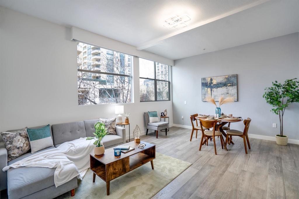 VA approved, brand new remodel, and one of the best deals in the Marina District, downtown’s most refined and sought-after neighborhood. The #1 rule of real estate: location, location, location. Every detail has been thoughtfully updated, featuring sleek finishes and high-end materials throughout. This Southwest facing condo was expanded to provide an open-concept living area that is bathed in natural light, creating an inviting space perfect for relaxation or entertaining. The 10 ft ceilings add a sense of volume and elegance while the kitchen boasts stainless steel appliances, quartz countertops, and ample cabinet space, while the spa-like bathroom offers a serene retreat. The spacious bedroom includes a generous closet for all your storage needs. The building boasts two rooftop decks and lounges and is located in the highly sought-after Marina District, you'll be steps away from world-class dining, shopping, and entertainment, including Seaport Village, the Gaslamp Quarter, and the waterfront. With secure building access and convenient amenities, this unit is an exceptional opportunity to experience San Diego living at its finest. One of the few buildings in downtown with earthquake insurance.
