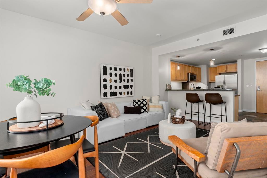 Charming Metrome residence with tranquil Zen Courtyard views and a spacious private patio. This one-bedroom home showcases engineered hardwood floors, fresh paint, ceiling fans in the living area and bedroom, plus a granite and stainless-steel kitchen with easy-to-maintain stone flooring. Perfectly located in Ballpark District, enjoy walkability to the Central Library, Petco Park, San Diego Bay, Gaslamp Quarter, and more. Community amenities include a fitness center, lounge, onsite security, and a serene courtyard with seating. Metrome in Ballpark District offers a prime Downtown San Diego location—steps from Petco Park, San Diego Bay, Gaslamp District, the Central Library, shops, and restaurants. Residents enjoy a Zen courtyard, fitness center, landscaped outdoor area with water feature, bike storage, secure entry, and a common lounge with kitchen. Experience the perfect blend of style, convenience, and community at Metrome!