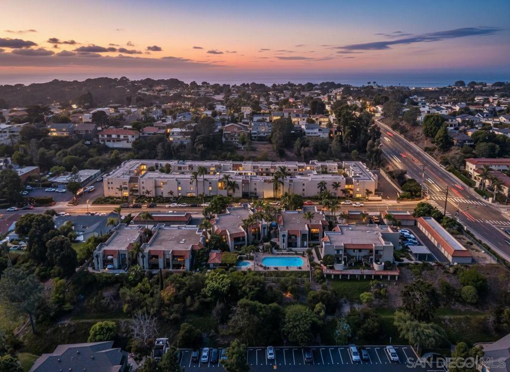 Experience coastal serenity in this bright, peaceful home located in a quiet, gated-style community of just 36 residences. Perfectly positioned at the back of the complex, this tranquil retreat offers exceptional privacy along with breathtaking 180° views of the Torrey Pines trees and Rancho Bernardo mountains. Inside, natural light pours through three skylights—including one that opens in the bathroom—creating a warm and inviting ambiance. The thoughtfully designed floor plan features L-shaped view windows in the living room, kitchen, and bedroom, framing scenic vistas and allowing cool ocean breezes nearly year-round. The home is allergy-friendly with beautiful laminate flooring throughout and includes a garage with built-in cabinets, a new water heater, new electrical panel, new wall heaters, and pre-installed wiring and plumbing for a mini-split A/C system. A security screen door at the entry provides both safety and refreshing airflow. Enjoy the convenience of in-unit laundry, a private balcony, and an unbeatable location—just a short stroll to the Beachside Del Mar Shopping Center featuring a coffee shop, restaurants, grocery store, drug store, Pilates studio, dry cleaners, and ice cream shop. Torrey Pines State Beach and Reserve are within biking distance, with Del Mar Dog Beach and downtown Del Mar moments away. Set within a low fire-risk zone, this secure, fenced community offers resort-style amenities including a pool, spa, and open green space with an area for dogs. HOA dues cover water and electricity for the garage. There’s also an option to rent an additional parking space. This home perfectly blends convenience, comfort, and coastal charm—your own peaceful retreat by the sea.
