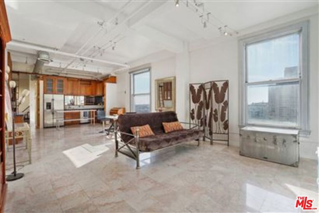 Beautifully renovated NY Style Industrial Loft at the historic Higgins Building. This bright, sun drenched, & open loft home includes has 914 SQFT of living space, 7 oversized industrial zinc plated windows, 11' ceilings, & polished concrete with mosaic & marble tiled floors. Indulge in the luxury of Italian white marble flooring, with classic, organic grain highlighting nature's beauty and timeless grandeur. This statement floor elevates the entire living space for the classic at heart. Rare loft layout with windows on both south & north sides of the living space. The unique '08' units have a premium of exclusivity with only 10 units (ideally from the 7th floor upward, limiting availability to just 4 units) in the entire building. This layout provides optimal living, with cross ventilation and dual-aspect views, capturing both the dramatic city skyline and serene interior courtyards which helps with quiet from city, panoramic views, and better air quality. Remodeled kitchen w/ custom cabinetry with tons of storage and quartz counter tops, & Stainless Steel appliances. Indulge in warm baths w/ city views from the remodeled bathroom complete w/ large windows showcasing views of the city, new vanity, tiled flooring, & in unit Washer/Dryer. Living/kitchen rooms showcase an elegant marble tile flooring, elevating the natural light and are easy to clean. Rooftop BBQ & dining area offer stunning skyline views. Steps from LAPD dog park, Little Tokyo, Grand Park, Grand Central Market, Blue Bottle Coffee, Redbird, Badmash, fine dining, entertainment, museums, concert halls, & public transportation. A piece of living history, the Higgins building exemplifies the burgeoning community of art, culture, and entertainment in downtown. *BONUS* The Higgins Lofts is a registered federal historic landmark with Mills Act Tax exemption status saving owners roughly 75% off of property taxes. Water, Trash, Sewage, & General Liability/Fire Insurance included with HOA Dues. Residents pay their own electricity + TV/Internet. Optional Parking available adjacent to building for $175/month. For urban dwellers committed to a healthy lifestyle, these 08' series sets a higher standard in city living, offering a unique combination of environmental comfort, wellness, and rare design aesthetics.