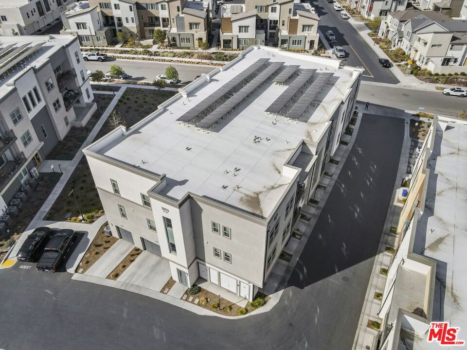 Welcome to the amazing energy efficient Five Point Lamplight Stacked Flats where you will enjoy everything the community has to offer. As you enter the home notice all the upgrades throughout starting with the custom paint on the entry doors that leads into the kitchen with white cabinets and custom pulls that continue through the whole home. All the windows have custom window coverings. The Great Room and dining area are open to the kitchen which is great for entertaining with lots of natural light coming through the huge windows that overlook the courtyard off the large balcony. This is an end unit with unobstructed mountain views. The primary suite is located off the dining room for privacy and has a large walk-in shower with double vanities. It also has a linen closet inside the primary suite and one leading to the laundry room. The other two bedrooms are large and share a bathroom with custom window coverings as well. The home has Ring security and coded entrances as part of the master planned community. Come see all this community has to offer. Included is a wonderful Club House that has Cabanas ,three pools, plus a community garden with outdoor cooking along with bike paths and hiking trails. The community is close to shopping,freeways,resturants and Magic Mountain. Dont let this great location get away from you!!