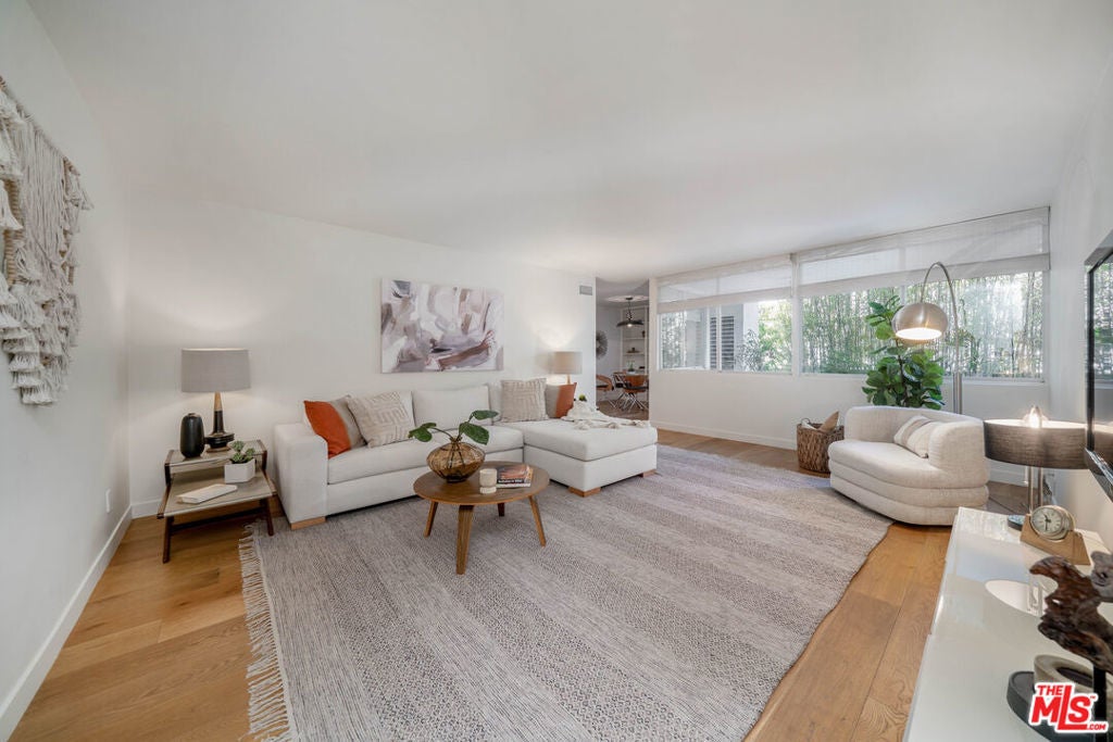 Priced To SELL! All staging furniture in photos has been removed. Luxurious Living in Beverly Hills! Discover sophisticated city living at its finest in this Landmark Mid Century Modern building designed by the famous Ray Kappe. This completely remodeled 2BD 2BA 1092 sqft condo is located in the back of the building which serves as the perfect private oasis that you have been searching for. Upon entering, you are greeted by a spacious living room with a beautiful botanical view that is perfect for both relaxation and entertainment. Elegant hardwood floors and an inviting ambiance. The custom kitchen has white quartz countertops, white cabinets, stainless steel appliances, a gas rangetop, electric stove, custom dishwasher and ample storage space. Adjacent to the kitchen, a stylish dining area provides an ideal setting for hosting intimate dinners or casual gatherings. Retreat to the primary suite with new double pane windows, new custom wall closet, recessed lighting, brand new carpet, a pristine new en-suite bathroom with a marble double vanity, hex floor tiles and a classic subway tile shower for ultimate luxury. Insulated ceiling for noise reduction. The guest bedroom or office has been transformed into the closet of your dreams which is also removable with new carpet, a floor to ceiling sliding glass door which opens directly to the enclosed patio that offers a serene outdoor space for al fresco dining or morning coffee. The guest bedroom is separated by a charming guest bathroom with a new marble vanity and new tile floor & shower. Newer Hvac / Brand New Washer/Dryer in Laundry closet/ 2nd parking space for $500 per year Conveniently located just moments from world-class shopping, dining and entertainment, Beverly Center, Rodeo Blvd, Robertson Blvd, 3rd Street, Trader Joes, The Grove, LACMA and Cedar Sinai Hospital, the Purple Metro Line coming in 2025, and the Beverly Hills School District this residence is surrounded by the vibrant cityscape and offers a seamless blend of modern elegance and timeless charm. Don't miss your opportunity to experience luxury and sophistication in one of LA's most coveted neighborhoods.