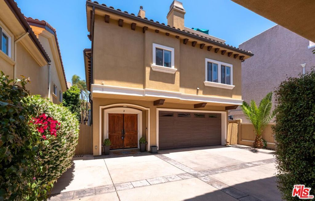 MAJOR PRICE REDUCTION. Rear Free standing Unit with rear privacy wall, private yard and ocean/marina view roof deck. Reverse floor plan with 2nd floor gourmet kitchen featuring Viking stainless appliances and granite countertops. Vaulted ceiling great room features a stacked stone fireplace and french doors opening to a rear balcony overlooking the exceptionally private rear yard. Oversized primary suite features a walk-in closet, built-ins with plenty of storage and a gas fireplace. Rear yard features a sparkling above ground spa. Maple plank hardwood floors throughout are in very good condition, as are all fixtures and railings. Roof deck is an entertainers paradise with room to grill, dine and take in the ocean views and breeze. Very friendly neighbors with no HOA. Single Family living at a townhome price point.