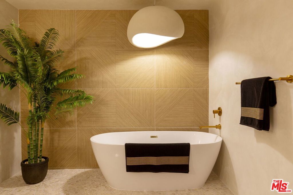 Tucked just off Ventura Blvd at the crossroads of Encino and Tarzana, this top-floor penthouse blends volume, openness, and luxury in a way few condos can. With nearly 2,000 square feet, soaring 14-foot ceilings, and designer finishes you'd expect in a multi-million dollar estate, this 3 bedroom, 3 bath unit lives like a custom home. Step through the double doors into a breezy, open-concept layout that immediately feels expansive. The chef's kitchen is wrapped in rifted white oak cabinetry, Dekton countertops, and stainless steel appliances. The living room flows effortlessly with vaulted ceilings, a fireplace detailed in white oak paneling, and oversized sliding doors that lead to one of two private patios. Adjacent, the formal dining area is anchored by a custom chandelier and wet bar - perfect for entertaining or intimate evenings. Down the hallway, discover two beautifully updated bathrooms and a full laundry area, all wrapped in rich Venetian plaster for a touch of refined texture. Two secondary bedrooms offer versatile options for guest accommodations, a home office, or creative space. The primary suite is its own escape, featuring a spa-inspired bathroom with microcement walls, travertine floors, a freestanding soaking tub, and a walk-in shower. A second private patio extends from the bedroom, offering an outdoor moment of peace morning or night. From boutique shops and all-day cafes to yoga studios and curated retail, some of the Valley's best lifestyle offerings are just a block away. This penthouse offers elevated living with meticulous design, exceptional walkability, allowing for a stylish, low-maintenance lifestyle that lets you focus on what matters most.