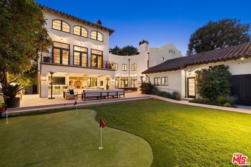 Privately gated on one of Brentwood Park's most prestigious streets, this exceptional estate offers over 9,500 sq ft of thoughtfully designed living on a lush .59-acre lot. Timeless architecture blends seamlessly with warm, functional interiors, creating a true sanctuary for elegant entertaining and elevated family living. Dramatic volume and natural light fill the home, with soaring ceilings reaching over 20 feet in the kitchen and family room. A private elevator enhances convenience across all levels. Upstairs, a luxurious primary suite with fireplace, sitting room, and dual walk-in closets is complemented by three generous secondary bedrooms and a spacious playroom. At the heart of the home is a stunning chef's kitchen with top-tier appliances, oversized island, and walk-in butler's pantry opening to a sunlit great room with effortless indoor-outdoor flow. Additional highlights include a formal dining room, private office, full gym, Pilates/dance studio, and separate staff quarters. The resort-like grounds are designed for both vibrant entertaining and tranquil retreat, featuring a swimmers' pool and spa, championship pickleball/sport court, basketball hoop, putting green, and a covered outdoor kitchen with BBQ pavilion. Wellness amenities include an inviting outdoor shower, private sauna, and rejuvenating cold plunge. Meandering garden paths, hidden sitting areas, and a curated farm-to-table vegetable garden create serene moments throughout, while a large grassy lawn offers ample space for kids and pets. Completing the estate is a fully detached guest house with living room, kitchenette, full bath, and private bedroom, ideal for guests, staff, or extended family. An unparalleled offering of luxury, privacy, and lifestyle in Brentwood's most coveted enclave just moments from the Brentwood Country Mart, top-rated schools, and all the best of the Westside.