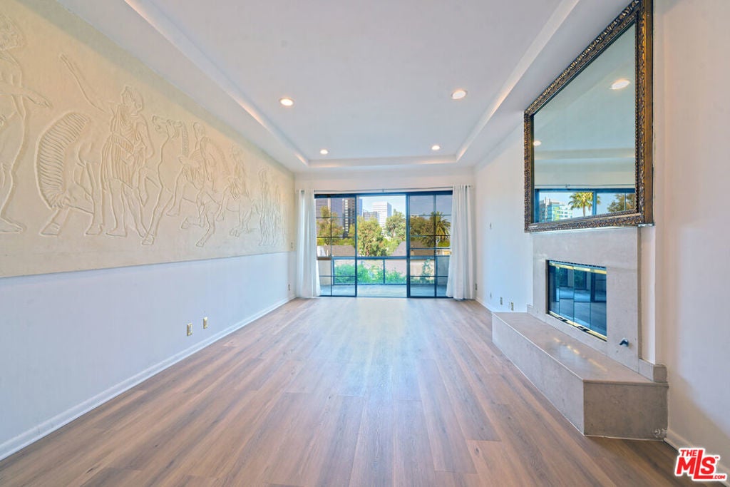 Exquisite Beverly Hills Penthouse with High Ceilings & Sweeping Views . Discover serene luxury in this recently remodeled two-bedroom penthouse in the prestigious "The Hamptons" complex. With a desirable split floor plan, each bedroom is positioned on opposite sides of the unit ideal for privacy each featuring its own en-suite bathroom, plus separate office and powder room w/sky lights. Step inside to soaring ceilings, new flooring, and abundant natural light from skylights and floor-to-ceiling windows that frame gorgeous open views. The spacious living room features a fireplace and opens to a large private terrace perfect for entertaining or relaxing under the stars. The stunning new kitchen boasts quartz countertops, sleek stainless steel appliances, and ample cabinetry. The luxurious primary suite offers downtown city views, a romantic fireplace, a generous walk-in closet, and a spa-like en-suite bath with separate soaking tub and glass-enclosed shower. The second bedroom also includes a walk-in closet and en-suite bath. Additional highlights: Side-by-side in-unit laundry, Two side-by-side parking spots. Resort-style amenities: pool, spa, fitness center, sauna. Unbeatable location near La Cienega Park, Beverly Hills Tennis Courts, The Beverly Center, fine dining, and houses of worship all within the acclaimed Beverly Hills School District. A rare find in one of L.A.'s most coveted addresses!
