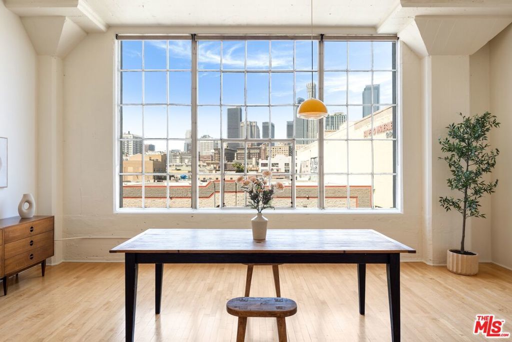 Welcome to a harmonious blend of modern elegance and urban sophistication. A New York-style loft in Downtown LA. The Landmark loft features architectural elements such as an open floor plan with an original oversized steel casement window facing West - rending a WOW-factor view of the Downtown L.A. skyline. Watch the sunset from the comfort of your living room. Step into tall gallery walls, hardwood floors, 12 ft. ceilings, exposed beams and original columns. A bedroom alcove with a walk-in closet and custom built shelves and additional lighting installed inside. Natural light emanates throughout. A galley kitchen that maximizes space and is fully equipped with stainless steel appliances. The bathroom features a large soaking tub and a stacked washer and dryer. Bonus feature! 2 parking space on title plus 25 visitor parking spaces. Building amenities include 24/7 security, an open-air lounge patio, a heated pool and hot tub, barbecue area, fitness room and dog run. Adjacent to Little Tokyo and the Arts District. A stone's throw away from a diverse range of restaurants, coffee shops, breweries, museums and much more. The Little Tokyo Lofts is a six-story condominium building. The Little Tokyo Lofts stands as a testament to the industrial history of Downtown Los Angeles. Originally constructed in 1922 as the Westinghouse Electric Company, the trademark historic Art Deco building was transformed into residential lofts in 2006, offering a blend of historic charm and modern living.