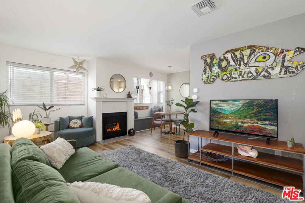 Not Your Average One-Bedroom! Discover this unique, light-filled, townhome-style condo in one of Santa Monica's most sought-after neighborhoods just blocks from Montana Avenue, Wilshire Boulevard, the Third Street Promenade, and the beach. Located on the top floor and positioned as a private end unit, this home feels warm and inviting with brand-new flooring throughout, an updated kitchen, and two fireplaces one in the living room and one in the bedroom perfect for cozy coastal evenings. The spacious third-floor bedroom is truly special, offering stunning views of both the Santa Monica Mountains and Downtown L.A. Enjoy a walk-in closet, bonus attic storage, and a private patio ideal for your morning coffee or sunset wind-down. The fully remodeled bathroom is brightened by a charming skylight, enhancing the home's natural light and open feel. Additional features include in-unit laundry, central heat and brand-new A/C unit (though ocean breezes keep things cool even on hot days), and a secure gated complex. Two side-by-side parking spaces are located directly below the unit, along with a large private storage area in front of the spots making day-to-day living easy and efficient. Low HOA dues of just $200/month and only 7 units in the building make this an exceptional opportunity to own in a prime Santa Monica location without sacrificing comfort or affordability. Live the Santa Monica lifestyle with top-rated shops, restaurants, schools, and the beach just minutes from your front door.