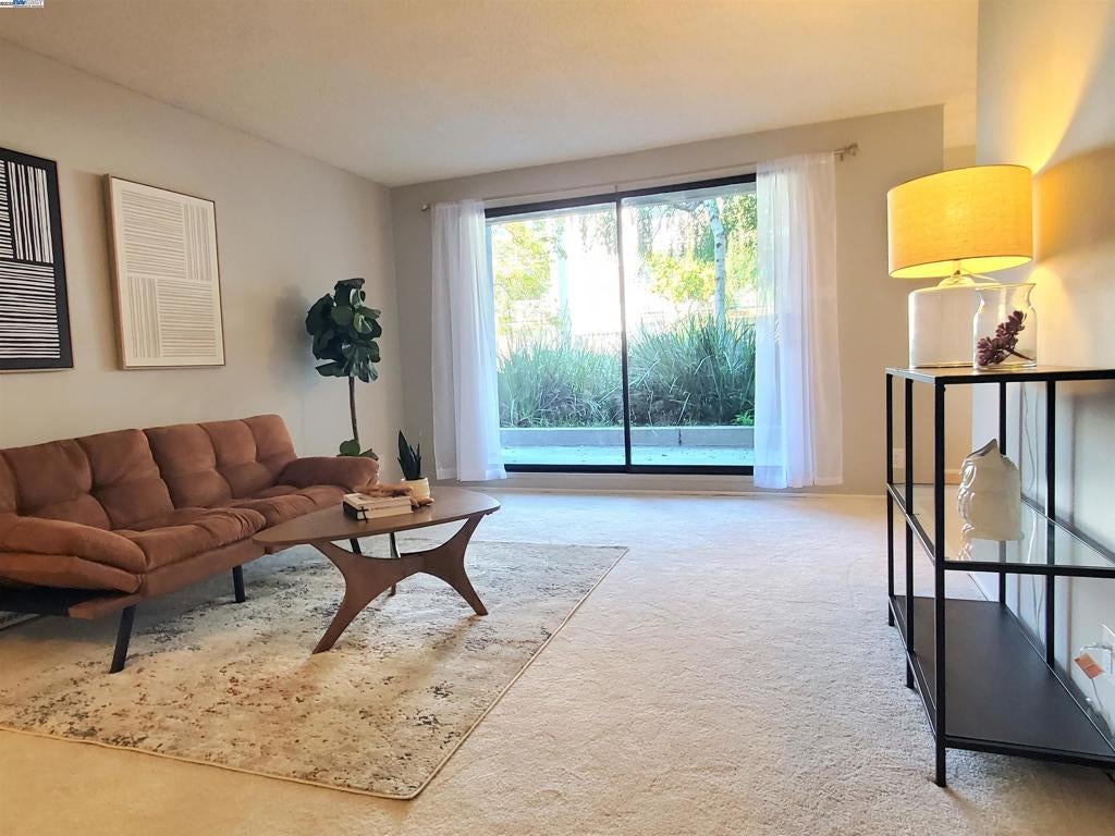 This Watergate condo is resort-style living on the Emeryville Marina. Serene corner unit 1 bedroom, 1 bath, garden level condo has a private patio that looks out to trees and greenery. This condo has been freshly updated throughout. The kitchen has new cabinets and sink, stainless-steel range, microwave hood and dishwasher. Dining area has new light modern light fixture. New carpeting with laminate hardwood in kitchen and hallway, with painted light grey walls. Bathroom has also been renovated with new cabinet, sink, toilet, medicine cabinet and light fixture. Plenty of counter space, with separate toilet and shower room. The bedroom is larger with a walk-in closet. New blinds in bedroom and dining area. One parking spot in garage, just steps from building door, with onsite EV charging stations. Watergate offers amenities on 26 acres that includes a clubhouse with recreational activities, pool tables, fireplace, gym and outdoor pool and hot tub. This particular unit's building has their own private pool as well. Other swimming pools, sauna, racquetball, tennis courts, 24-hour security, free shuttle bus to BART, easy access to freeway, shopping and restaurants makes this place one of a kind.