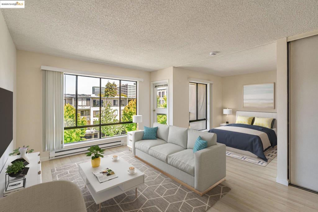 This bright and inviting Watergate studio offers an open-concept layout, a spacious private balcony with serene water views, and a comfortable, versatile living space perfect for relaxing or entertaining. The open kitchen and airy layout make it an ideal choice for comfortable everyday living or a smart long-term investment. The property has been virtually staged to help you envision all of the possibilities. Watergate residents enjoy resort-style living with multiple pools, spas, a gym, tennis courts, and 24-hour security. The home is ideally located within the community, with close proximity to a courtyard, laundry room, and pool. Located less than 20 minutes from San Francisco, this home is also just minutes from Trader Joe's, the Emeryville Public Market, and the iconic waterfront restaurant Trader Vic's. Whether you're looking for your next home or investment property, 9 Commodore Drive #402 checks all the boxes.