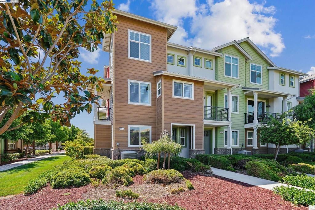 Modern East Facing Townhome-Style Condo Corner Unit with Luxury Finished & Prime Location. Overlooking the beautiful lush open green spaces with basketball court, playground, and community amenities! Ground-floor bedroom suite ideal for guests or a private office. Enjoy upscale touches throughout, including rich hardwood flooring, recessed lights, elegant crown molding, plantation shutters, built in surround sound system and water softener. Open-concept second level is the heart of the home featuring a chef's kitchen with granite countertops, center island, stainless steel appliances including refrigerator and built-in 5-burner gas range & walk-in pantry w/glass door. Expansive balcony with upgraded flooring perfect for morning coffee or evening relaxation. Upstairs the luxurious primary suite and vaulted-ceiling secondary bedroom each feature walk-in closets and en-suite bathrooms, offering privacy and comfort for all. Ample storage solutions throughout the home and the tandem 2 car garage. HOA dues include pool, spa, clubhouse & fitness gym. Easy Access to 580 and 84, next to Cayetano Park & Hiking Trails, close to Costco, San Francisco Premium Outlets, Restaurants, Shopping, Las Positas College & More!