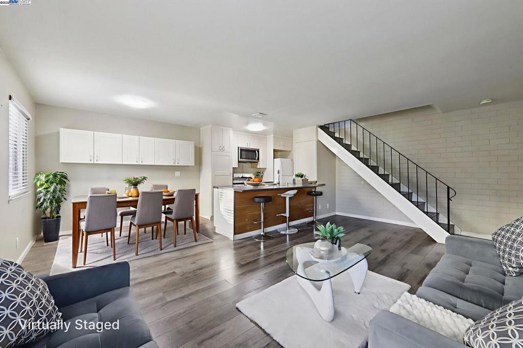 This charming 2-bedroom, 1-bathroom townhouse-style condo at 34717 Alvarado Niles Rd, # 3, Union City, CA offers the perfect blend of privacy and comfort in a two-story layout. With nobody living above or below you, this home provides a peaceful, quiet environment, making it feel more like a private residence than an apartment. The spacious design features an updated kitchen, generous living areas, and abundant natural light, ideal for those seeking both space and modern amenities. Enjoy easy access to major freeways, including I-880, I-680, and the Dumbarton Bridge, situated near Union Landing for shopping and dining, with nearby parks and top-rated schools . The HOA covers water, garbage ,common area maintenance, and access to a refreshing swimming pool. The unit also includes one garage parking space, with additional parking available on the driveway. Located in a well-maintained community, this two-story apartment offers a unique opportunity for comfortable living in the heart of Union City. Dinning room and two bedrooms are virtually staged.