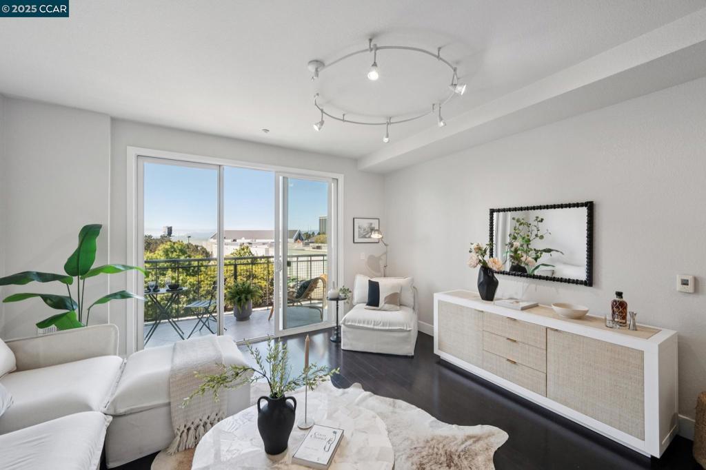 Modern Bay Street living at its finest! This beautifully staged 2-bedroom, 1-bath condo offers a bright open floor plan, freshly updated with designer touches and an abundance of natural light. The kitchen features granite countertops, stainless steel appliances, and a gas range—perfect for gourmet cooking. The spacious living and dining area flows seamlessly to your private patio, where you can enjoy breathtaking views of the Golden Gate Bridge, Bay Bridge, and San Francisco Bay. Upstairs, the primary bedroom offers generous closet space and bath features dual vanity, shower over tub, and tile finishes. Additional conveniences include in-unit laundry, ample storage, and two separate assigned garage parking spaces in a double gated remote entry. Ideally situated just steps from Bay Street’s vibrant shops, restaurants, theater, Apple Store and Philz Coffee, plus quick access to BART, Amtrak, AC Transit, and the free Emery-Go-Round shuttle. Only minutes to San Francisco and the Bay Bridge, with nearby bike paths and the Bay Trail for an active lifestyle. A rare opportunity to own a move-in ready, view condo in one of Emeryville’s most sought-after communities. Experience the perfect blend of style, convenience, and location!