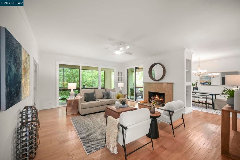 Rare 3-Bedroom 2Bath Villa Encanto! This beautifully updated 3BD/2BA home offers 1,842 sq. ft. of thoughtfully designed living space—perfect for those seeking more room than a typical downsized home provides. Light-filled interiors showcase hardwood floors, crown molding, and a welcoming atmosphere. The spacious living room opens to a partially glass-enclosed wraparound patio, ideal for entertaining or relaxing among the trees. The updated kitchen features modern cabinetry, stainless steel appliances, and recessed lighting, while both bathrooms have been stylishly remodeled with tile, vanities, and contemporary fixtures. Additional highlights include an interior laundry room, a full 2-car garage with loft storage, a pantry area perfect for wine storage, stone wood-burning fireplace, breakfast nook, formal dining room, and primary suite with double sinks, walk-in closet, and abundant cabinetry. Newer double-pane windows, ceiling fans, and tranquil natural surroundings complete this exceptional home. A rare combination of space, privacy, and modern updates—don’t miss it!