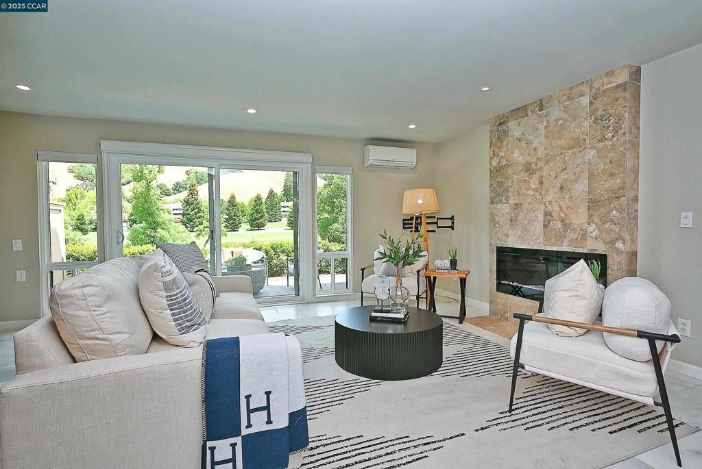 OVER 1700+ SQ. FT! Prepare to be captivated by this stunning 3-bedroom, 2-bath home, perfectly positioned on the 14th hole with panoramic views stretching across the valley. Living room, primary bedroom and patio offer breathtaking vistas, making this home truly one of a kind. Completely transformed to the next level within the last several years, this home features a sleek, modern kitchen with modern cabinetry, stainless steel appliances, and luxurious Silestone countertops. The open-concept living room is both elegant and cozy, centered around an electric fireplace complemented by a custom built display cabinet with storage, shelving for books, glassware and display space for treasured mementos. Retreat to the spacious primary suite, where you’ll find an electric fireplace, incredible closet space and tranquil views of the golf course and hills. The spa-like primary bath features Bisazza glass mosaic tile from Italy, heated floor, a steam shower and a Toto bidet toilet – your own private oasis. Low utility bills with the Mitsubishi heating system and solar powered skylights! GREAT STORAGE INSIDE AND AT THE CARPORT!