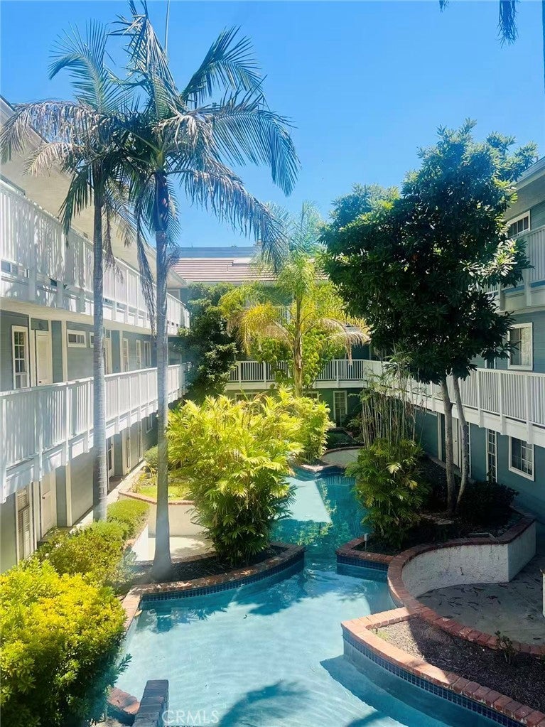 This Oasis condo will make you feel like you're on Hawaii, peaceful, tree-lined neighborhood near Madison Heights and the Playhouse District in Pasadena. Walking distance to cafe shops, Macy and Trader Joe's. Two blocks from Urth Cafe. This second floor unit is conveniently close to the elevator. As you step inside there is a cute little bar, the open floor plan immediately welcomes you with a bright and airy ambiance. To the left is the dining area provides a warm gathering space, and beyond it is the kitchen with windows overlooking the front hallway of the building and palm trees with blue sky. Flowing through from the dining area into the living room features high ceilings. Gorgeous big red brick fireplace and a large sliding glass window door leading to a spacious private balcony. To the right of the living room is a laundry room with double deck washer and dryer tucked away in a closet for convenience. The first bedroom is complete with two wall closets, providing plenty of storage, there is a bathroom diagonally to bedroom. The Left side of the condo is the Master bedroom with bath, it also has two closets with sliding doors lots of storage space. This home includes subterranean one parking with one small storage unit in front parking space.