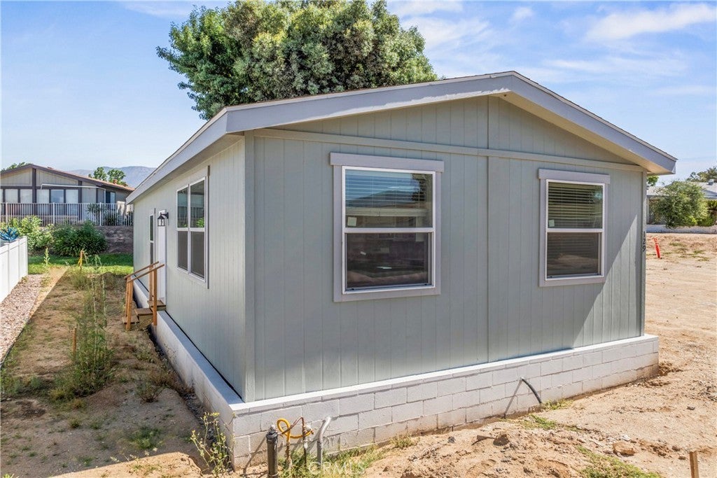 Brand New, Never Lived In – Custom Manufactured Home in Banning! This custom-designed manufactured home showcases premium upgrades and high-end finishes throughout. Offering 2 bedrooms and 2 full bathrooms, the thoughtfully designed open floor plan features skylights that flood the space with natural light and custom fireplaces in both the living room and the primary bedroom. The kitchen is equipped with a center island, high-quality cabinetry, and all appliances are included. Also included is A separate indoor laundry room for added convenience, and a detached 2-car garage. Custom garage currently being built on the adjacent empty lot. Located in a well-maintained park with a greenbelt, residents also enjoy access to community amenities including a clubhouse and swimming pool. This move-in ready home has never been occupied and offers custom finishes, modern design, and a peaceful community lifestyle.