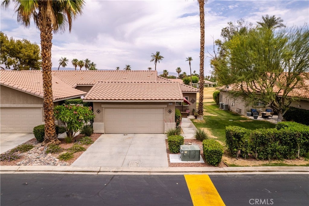 Welcome to your desert retreat in the desirable Indian Palms Country Club! This single-story, 2 bedroom, 2 bathroom condo sits on the golf course with stunning mountain views and is just 2.4 miles from the Empire Polo Fields—home to world-famous events like Coachella, Stagecoach, and the Sand Storm Lacrosse Festival. The home features vaulted ceilings, a spacious primary suite with a private bathroom and double sinks, and an indoor laundry closet for added convenience. A detached 2-car garage offers plenty of storage and parking. Enjoy resort-style living with access to fantastic HOA amenities including pools, spas, pickleball and tennis courts, a fitness center, and a country club ballroom. Plus, you’re just 15 minutes from Fantasy Springs Casino for entertainment, dining, and nightlife. Whether you’re looking for a full-time residence, vacation getaway, or investment opportunity, this property has it all!