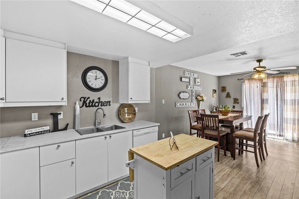 Step inside to a bright and inviting living room featuring a cozy fireplace, ideal for relaxing evenings. The open-concept layout connects the living space to a well-appointed kitchen with ample cabinet space, flowing into a spacious dining area. Sliding glass doors lead you to a private courtyard, perfect for intimate gatherings, outdoor dining, or a space for your furry companion to play.