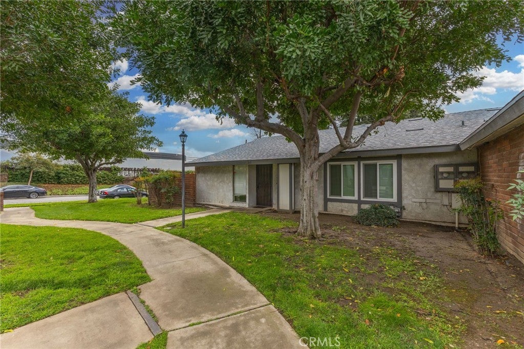 Delightful Single-Story End Unit Condo! Welcome home to a light-filled living room with vaulted ceilings that opens seamlessly to the dining area and kitchen—perfect for everyday comfort and effortless entertaining. This home features two spacious bedrooms with ample closet space, plus a bathroom with dual sinks for added convenience. A sliding glass door leads to your own private patio. Enjoy central air & heat and an indoor laundry closet. Enjoy the well-maintained community with lush landscaping, a playground, picnic area, and sparkling pool. HOA dues include trash, and exterior landscaping, offering peace of mind and low-maintenance living. Ideally located near shopping, dining, and with quick access to the 10 freeway, this is an incredible opportunity for first-time buyers or anyone seeking a low-maintenance lifestyle.