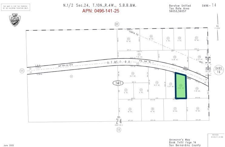 4.92 Acres (APN's 0496-141-25), GPS: 34.94757, -117.24388 This easy to access property is located in Hinkley, CA in San Bernardino County. The property, zoned for Rural Living, 5 Ac Minimum (RL), which offers an exceptional opportunity for solar development. While primarily designated for residential use, the zoning also permits accessory crop production and agricultural structures. Notably, commercial renewable energy facilities are allowed under the San Bernardino Development Code, making this an ideal site for solar projects. The adjacent property is also for sale. Nestled in the heart of the Mojave Desert, the Kramer Junction and Hinkley area combine natural beauty with historical significance. The expansive, rugged terrain and stunning desert landscapes make this region attractive for sustainable energy development. The Mojave Solar Project (Abengoa), a 250 megawatt solar electric facility is operating in the area. Kramer Junction, a key transportation hub, offers easy access for logistics, while Hinkley provides a serene, small-town atmosphere. This region not only draws outdoor enthusiasts but also presents a prime location for innovative solar energy projects. This property does not yet have an official address. While the boundary lines on the map offer a glimpse, they are only approximate. A Buyer should verify boundaries, zoning and utilities, ensuring every aspect aligns with their vision for the property.
