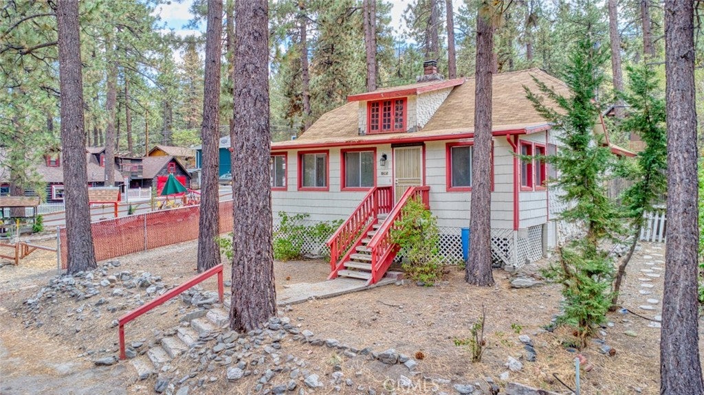 Classic Wrightwood mountain home features 3br, 2.5 bathrooms, newly carpeted downstairs, completely renovated primary bathroom, newly painted and all new appliances. Other features include fireplace, sun room in entry, fully fenced backyard with shed. Upstairs charming last century knotty pine with spacious family room and half bath.