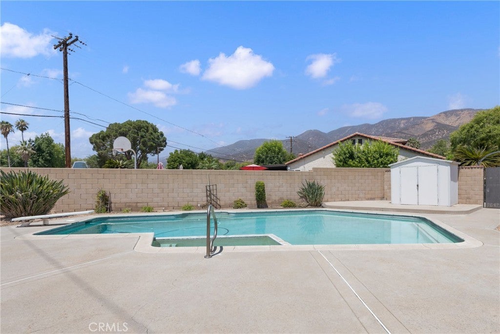 Discover your own private turnkey resort in a desirable San Bernardino neighborhood! Step inside this beautifully updated home and be captivated by the spacious living room featuring soaring vaulted ceilings, exposed beams that create an atmosphere of rustic elegance, perfectly complemented by a stunning white brick fireplace as the room's focal point. This move-in-ready gem shines throughout with fresh interior and exterior paint, new dual-pane windows, stylish plantation shutters, and gorgeous new flooring that flows seamlessly from room to room. The kitchen impresses with rich granite countertops that add both beauty and functionality to your daily living. Your private backyard oasis awaits with a gated in-ground pool and spa, two separate covered patio areas perfect for entertaining or relaxing, plus a lovely grass area for recreation. The oversized lot provides an extra-large driveway with ample space for RV or boat parking, while the entire property is enclosed by attractive brick walls ensuring complete privacy and security. Located in a sought-after neighborhood, this exceptional turnkey property offers the perfect blend of luxury, comfort, and convenience, simply move in and start living your dream lifestyle.