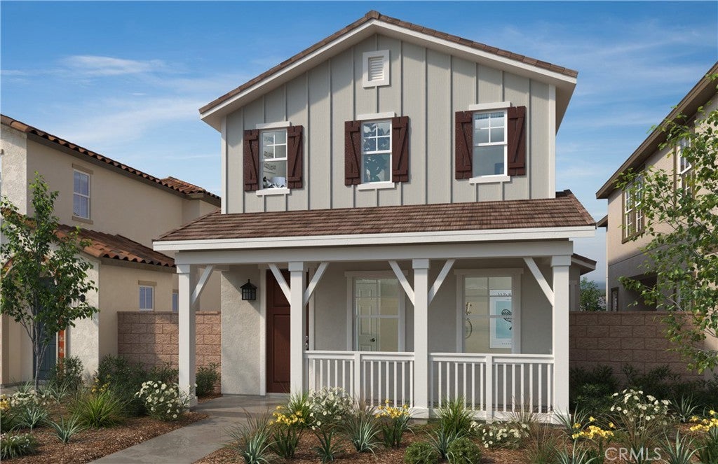 "Few homes remain and it's the final opportunity before we are sold out!" Monet is a Modern New Community directly across from New TOWN CENTER Preserve Shopping Center. This floor plan offers a great open 1595 sq/ft floor plan with 9-ft ceiling. Home features a desirable kitchen with modern island, whirlpool stainless steel appliances, and raised cabinets. The upstairs leads to a spacious primary bedroom with a large walk-in-closet and luxurious adjoining bath with double sink and large walk-in shower. A upstairs laundry room and Linen closet are added for more convenience. This home is NOT yet built and ready for you to personalize with customizable countertop, backsplash, appliances, flooring, special lighting and much much more. All Homes are EV pre-wired in the garage. Future community amenities include community pool/spa/meeting center, Pickle-ball court, BBQ/Picnic area and park. Also Monet is part of great schools: highly coveted Cal Aero Academy, Legacy Academy, and Chino Hills High School. Photo is rendering of the model. Buyer can either lease or purchase the solar.