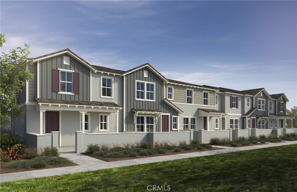 Beautiful New Construction, open concept floor plan with 9 ft ceilings on the first floor. Sytlish Kitchen with white thermafoil cabints and kitchen island, granite counter tops. back splash can personalize. Upstairs Large primary bedroom with large walk in closet and adjoining bath and walk in shower. Landscape pathways between homes and ample guest parking. Future community parks, pool, spa, dog park, pickle ball. Photo is a rendering of the model. Buyer can either lease or purchase the Solar.