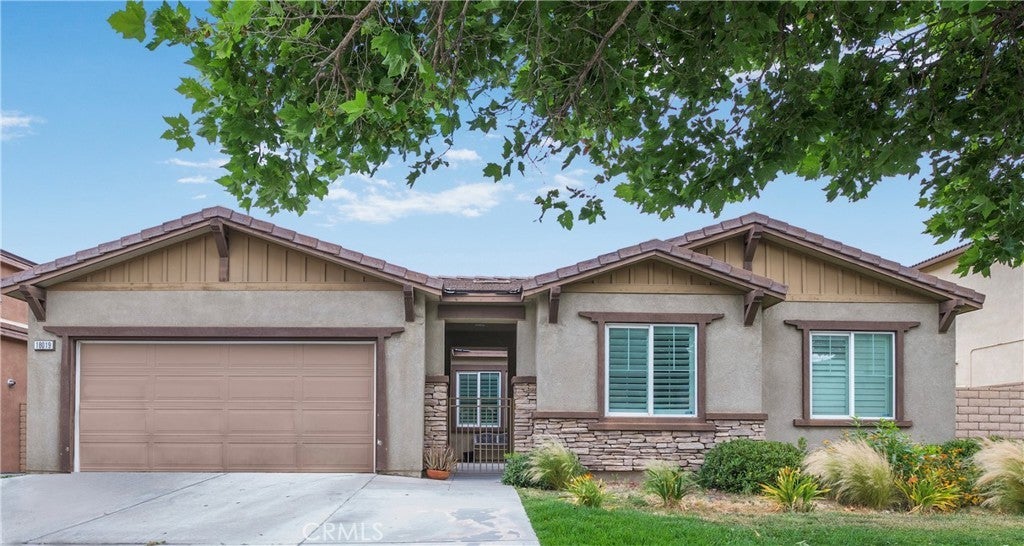 Welcome to this spacious and beautifully designed single-story residence offers 5 bedrooms and 3 full bathrooms, thoughtfully laid out in an open concept floor-plan that blends comfort and functionality. Step through the charming courtyard entry into a bright and inviting interior featuring a formal dining room, a versatile den perfect for a home office, playroom, or guest space, and a generous living area that flows seamlessly into the kitchen—ideal for both everyday living and entertaining. The kitchen, with plenty of counter space, overlooks the main living space and is perfect for gathering with family and friends. All bathrooms include double sinks, offering convenience, and the primary suite features a large walk-in closet for ample storage. Enjoy the outdoors year-round under the covered patio, perfect for relaxing or hosting gatherings. This home also comes with owned solar panels! Located in the vibrant Rosena Ranch community, residents enjoy resort-style amenities including an Olympic-sized lap pool and spa, splash park, clubhouse, state-of-the-art fitness center, and a picnic area with barbecues—perfect for weekend fun. This home combines style, space, and lifestyle in one of the Inland Empire’s premier communities!