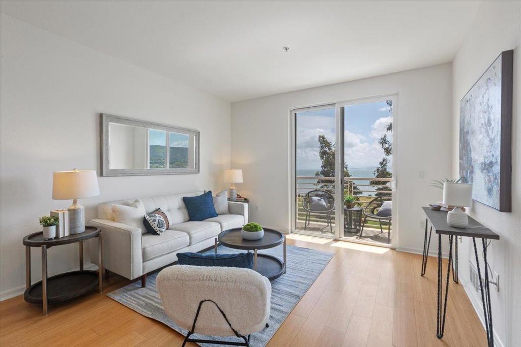 Experience modern comfort in this light-filled home featuring an open floor plan and a private balcony with the widest bay views in the community. This 2-bedroom, 2-bath layout is thoughtfully designed for maximum privacy and includes freshly painted interiors and brand-new carpet. Enjoy bamboo flooring, a sleek gourmet kitchen with stainless steel appliances, granite countertops, and a breakfast bar, plus a luxurious primary suite with a walk-in closet and en-suite bath. In-unit laundry adds convenience. Located just minutes from downtown SF and SFO, with secured parking and easy access to Highway 101. The community also provides a free shuttle to BART and Caltrain stations. With parks, waterfront trails, and open spaces just across the street, this is Bay Area living at its finest.