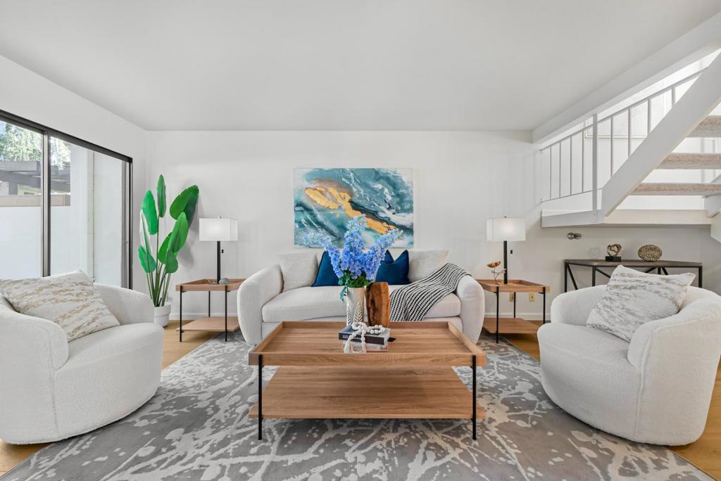 Location! Location! Location! Quiet residential setting just steps from the energy of downtown. This bright end-unit townhome features vaulted ceilings, huge balcony, skylights, fresh paint, new carpet & laminate flooring. Updated kitchen with new appliances, tile floors & stainless steel fridge. Spacious layout includes a huge private deck off the living room and a second secluded deck off the primary suite. Full laundry room with washer/dryer on the first level. Primary suite retreat with loads of natural light, high ceilings and walk in closet. Tons of storage with a rare stand-up attic. Secure gated garage with one assigned space, tons of parking spaces in community. Nestled in a serene, tree-lined setting with unbeatable access to Caltrain, Light Rail, Castro Street shops & top tech employers such as Google, Apple, Meta, LinkedIn etc. Easy access to Highway 237, 85. A private, move-in ready retreat in an A+ location!