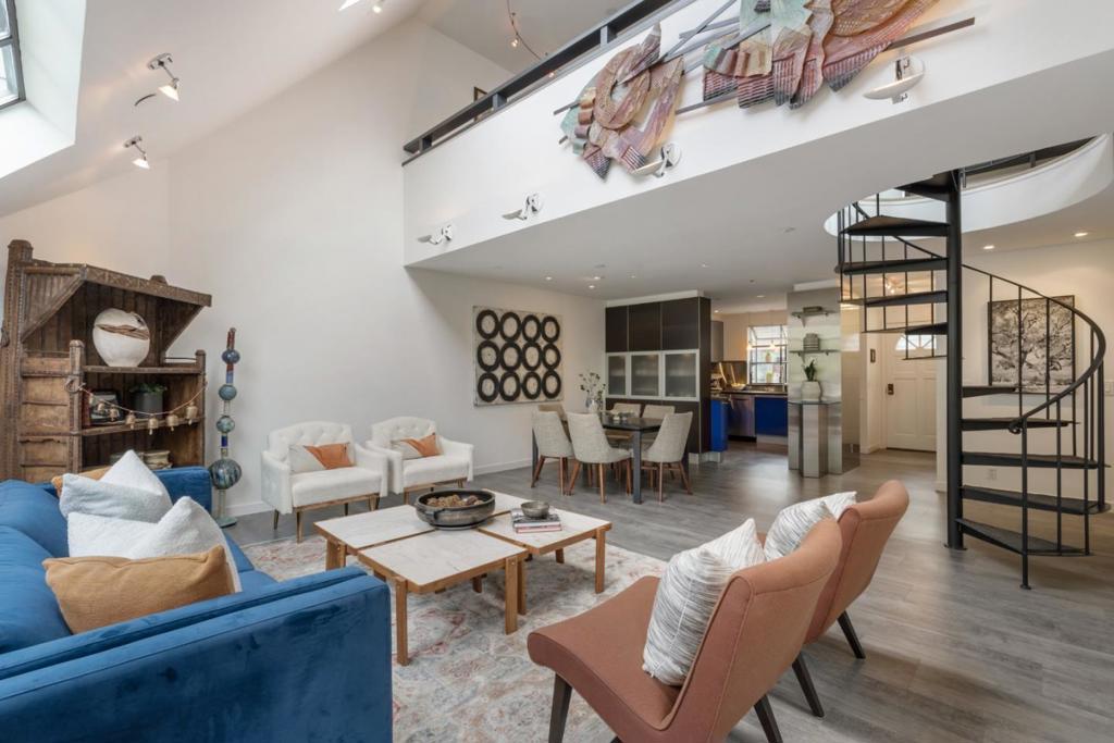 Dramatic downtown Palo Alto condo offering sophisticated living in a rare solarium-style building of just 12 units. This light-filled home features 3 bedrooms including loft space that can serve as a family room, office, or guest bedroom. Vaulted ceilings, a roof deck, and a balcony create a bright, open atmosphere. The custom Italian Dream Blue Snaidero kitchen showcases concrete counters and premium stainless-steel appliances, featuring a 4-burner gas Gaggenau cooktop with grill and a Miele convection ovenseamlessly blending style and function. Remodeled bathrooms, radiant heated floors, custom closets, and thoughtful storage maximize convenience. Enjoy in-unit laundry, two parking spaces with EV charger, and two storage units. As an added bonus, the complex includes two guest suites for visiting family and friends. Located close to Stanford University and top-rated Palo Alto schools, this residence combines modern design with unmatched location. HOA dues include hot water and heating.