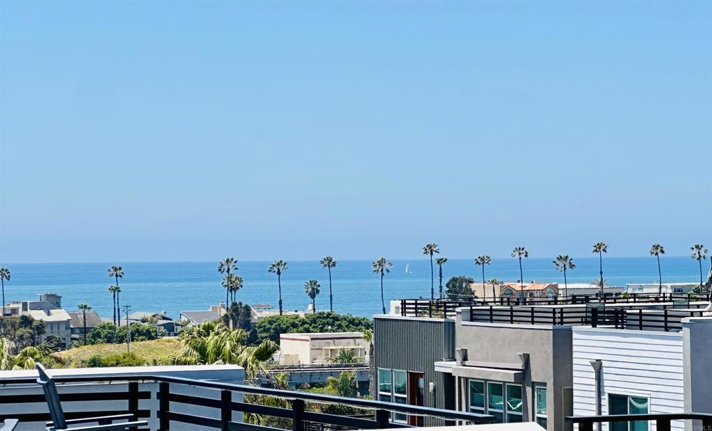 Incredible OCEAN VIEWS and a Private ROOFTOP DECK - RARE 5Bed/4Ba end unit, 2,556 sq ft. 2 Car Garage with LARGE private expansive rooftop deck with SUNSET views. 2018 construction, located in highly sought-after Vista Del Mar community off Pacific Coast Hwy, just a short 5 min walk to BEACH on Oceanside/Carlsbad border. Beautifully decorated, Meticulously upgraded Tri-Level Townhome... Open concept Kitchen/Family room features shiplap, beamed ceilings, custom lighting, upgraded cabinetry, quartz counters with waterfall edge island, stainless appliances, large breakfast bar & eat-in nook, custom window coverings & woodworking with upgraded flooring throughout. Multi-level outdoor deck space, French doors. Professionally decorated and seller will consider Option to purchase completely furnished. 1st Floor: One Bedroom & Bath, living room/office/exercise area, garage access - 2nd floor: Kitchen/Family room, Guest Bedroom & Bath, coffee bar - 3rd floor: Primary Bedroom & Bath, 2 secondary Bedrooms & Bath with laundry. 4th level: roof top deck. The super sized Primary Bedroom has a gorgeous bath: Tile flooring, lighting, large walk-in shower, a double vanity and quartz countertops dual sinks & huge walk-in closet with access to rooftop deck. Private Association amenities include a resort-like Swimming Pool/Spa/BBQ area. Quiet location, property is conveniently located next to Oceanside/Carlsbad beaches, restaurants, grocery stores & major freeways 5/78/76. A short bike ride to the Carlsbad Village or Downtown Oceanside restaurants, cafes, shopping, and the train station. You MUST SEE this home. Don’t miss this opportunity to own a newly constructed and upgraded home in an exceptional coastal location.