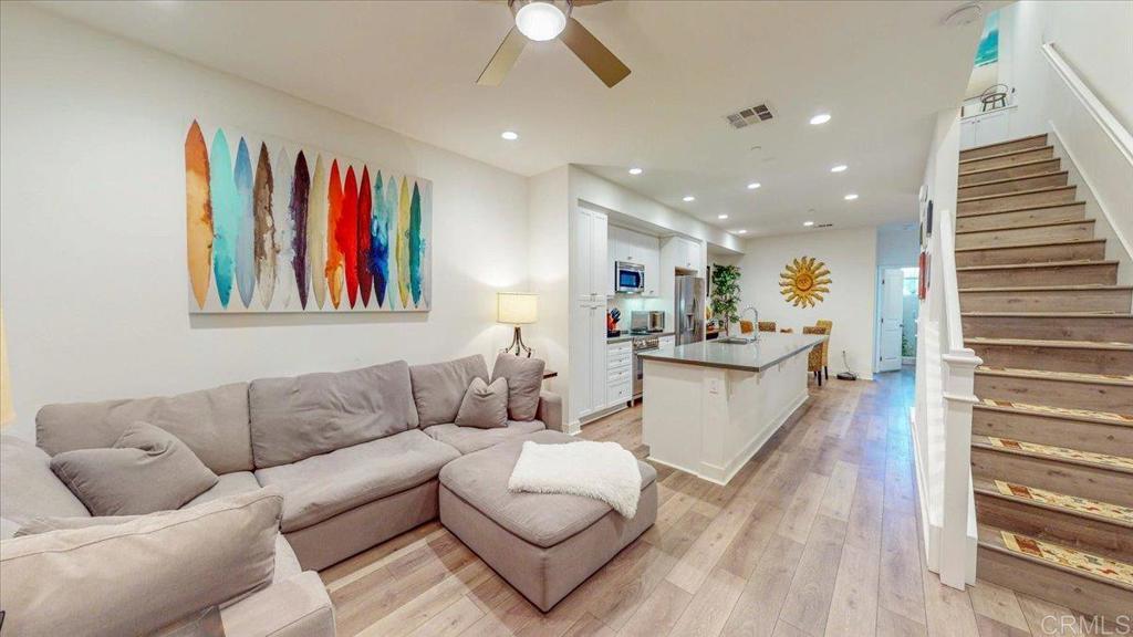 Amazing location and WEST of the 5!!! Very easy access to the beach, restaurants, parks, schools, library, pier, shopping, and all other local amenities. This coastal residence offers 1750 sq. ft. of thoughtfully designed living space across three floors. The home boasts 3 bedrooms and 3 bathrooms, providing ample space for comfortable living and entertaining. Optional 4th bedroom on ground floor is currently being used as a Flex-Space Office/Work Out area. The heart of the home is a sleek, modern kitchen featuring high-end appliances, ample counter space, and a large island perfect for casual dining or food preparation. Adjacent to the kitchen is a cozy dining area, seamlessly connecting to the living spaces. The primary bedroom, spanning 200 sq. ft., offers a retreat-like atmosphere with its spacious layout and en-suite bathroom. The additional bedrooms are well-appointed, each with its own unique charm. Throughout the home, you'll find a harmonious blend of functionality and style. The living areas are bright and airy, with carefully curated decor that reflects a coastal aesthetic. Hardwood floors run throughout, adding warmth and continuity to the space. The bathrooms are modern and well-equipped, with one featuring a glass-enclosed shower adorned with lush plants, creating a spa-like atmosphere. A dedicated laundry room adds convenience to daily life. Additional features include a home office space, ample storage solutions, and an attached two car garage. The property's layout, with its multiple levels and well-defined spaces, offers both privacy and areas for gathering, making it an ideal home for modern living in the heart of Oceanside.