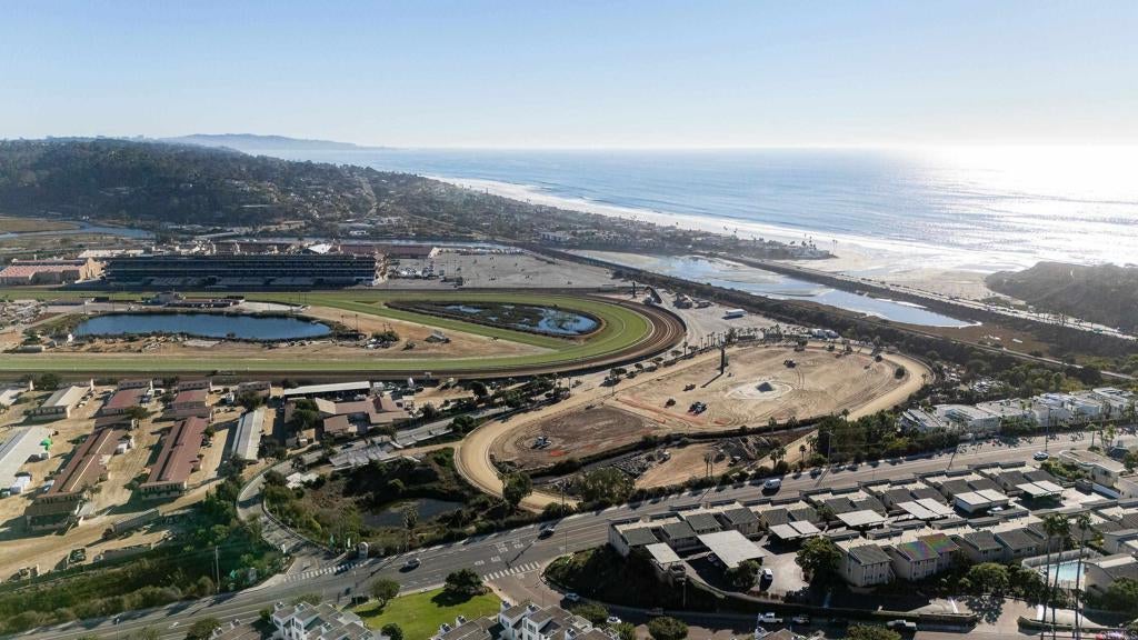 The PANORAMIC WHITE WATER OCEAN & DEL MAR RACE TRACK VIEWS from single level 2 bed/2 bath are breathtaking. Enjoy mornings watching the horses exercise while you drink your coffee & evenings gazing at the sparkling white water ocean views at sunset. Live here full-time or generate income as a short term rental. The community includes a swimming pool & is located just one block from the dog beach, World Famous Del Mar Race Track, Cedros Design District, restaurants & shopping.