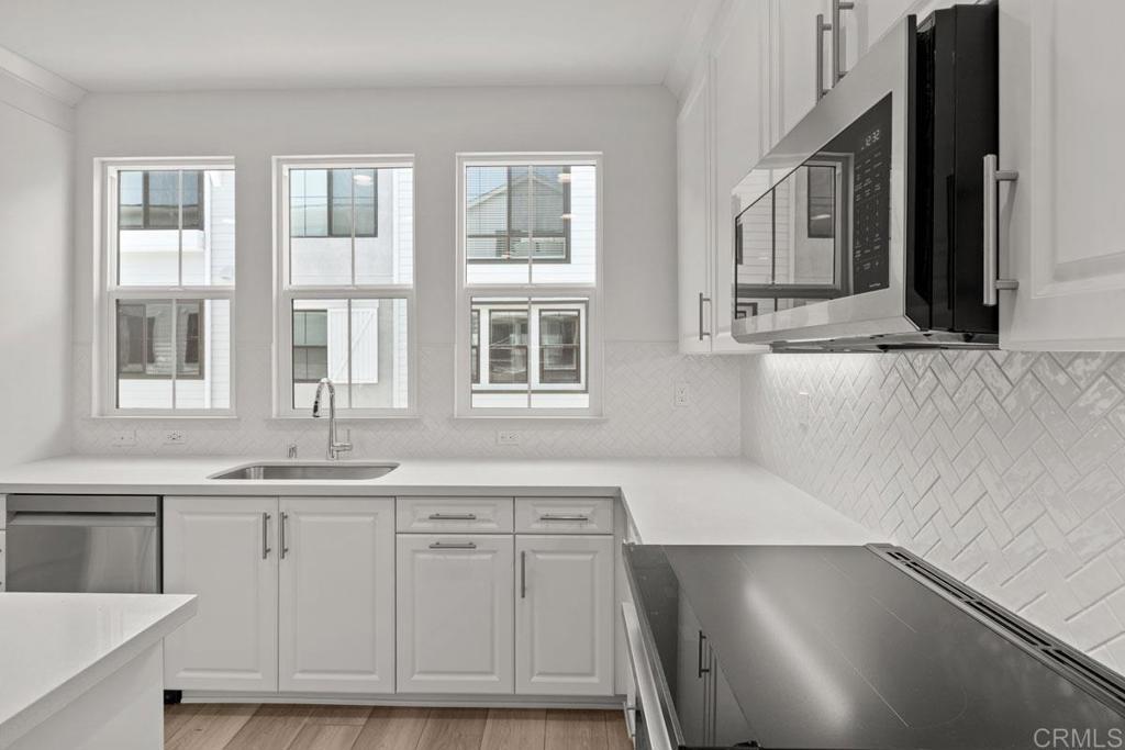 Experience modern elegance in this stunning, three-story home, which showcases an open floor plan with high ceilings and luxury vinyl plank flooring at main level. The kitchen boasts an island, thermofoil cabinets, quartz countertops, custom tile backsplash and Samsung® stainless steel appliances. The primary bedroom features a walk-in closet, plush carpeting and connecting bath that offers cultured marble countertops, oval undermount sinks, a walk-in shower and ceramic tile flooring. Embrace eco-friendly living with a solar energy system, LED lighting, electric charging station pre-wiring and smart thermostat. In house financing is available. Highly rated Carlsbad schools and just minutes from the beach. Easy access to beautiful Carlsbad Village. Why deal with the expense and hassle of rehabbing a used out of date home? Rare opportunity to get new on the coast!