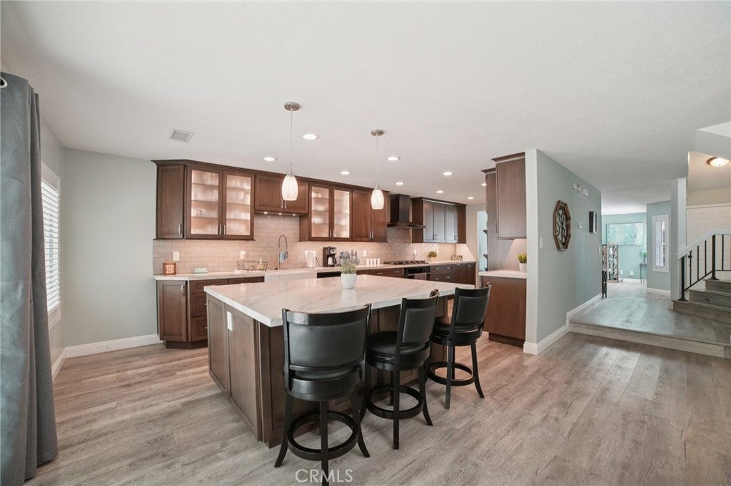 Tucked in the heart of Lake Forest, this end-unit townhome lives like a single-family residence, offering 3 spacious bedrooms and 2.5 luxurious baths across 1,746 sq ft. Nestled in one of the city’s most sought-after neighborhoods, it’s celebrated for its top-rated schools and vibrant community feel. From the moment you step through the private gated courtyard, you’re greeted by warmth, light, and a sense of possibility. This is more than a beautifully remodeled space, it’s where comfort meets intention, and where your next chapter begins. The expansive, custom chef’s kitchen is the true heart of the home featuring a powered center island with three ovens, sleek quartz countertops, Samsung appliances, Bosch dishwasher, and stunning solid wood custom cabinetry with custom organizers. The open-concept living area is filled with natural light, luxury vinyl plank flooring, and a cozy brick gas-fireplace that invites gatherings both big and small. Upstairs, the serene primary suite offers a peaceful escape with a walk-in closet and spa-inspired bathroom with a vanity backlit mirror, and glass shower doors, while two additional bedrooms share a beautifully updated hall bath. Step outside to a private, tree-lined patio or explore the community’s refreshed pool, spa, and scenic trails. Enjoy indoor-outdoor living with your private vinyl-fenced patio surrounded by mature trees, plus a large two-car garage, ample attic storage with pull-down access, indoor laundry, new water heater, PEX plumbing, dual-pane windows, and central AC. This turnkey home delivers ease, elegance, and everyday joy.
