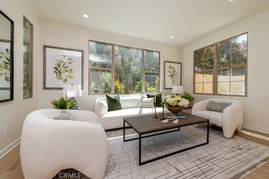 Welcome to this stunning corner-lot townhome in the heart of Portola Springs, offering 4 bedrooms and 3 full bathrooms including a convenient downstairs bedroom and bath. Ideally situated on a premium lot with views of the greenbelt, this home features an open, light-filled floor plan designed for modern living. The gourmet kitchen is equipped with stainless steel appliances, an island with quartz countertops, and ample cabinet space perfect for cooking and entertaining. Recessed LED lighting runs throughout the home, adding warmth and elegance. Upstairs, the luxurious primary suite features a spacious layout, walk-in closet, and ensuite bath. Thoughtful upgrades include enhanced insulation between floors and walls, providing a peaceful and quiet environment. Step outside to a private courtyard, ideal for relaxing and enjoying outdoor meals. Just steps from home, Village Square Park offers family-friendly recreation, with nearby access to Jr. Olympic pools, tennis and basketball courts, sand volleyball, BBQ grills, and playgrounds. Located in the award-winning Irvine Unified School District, this home is served by Portola High School. Enjoy close proximity to the Great Park, Woodbury Shopping Center, Irvine Spectrum, major freeways, and a variety of restaurants and shops. Don't miss this exceptional opportunity to own a beautiful home in one of Irvine's most sought-after communities!