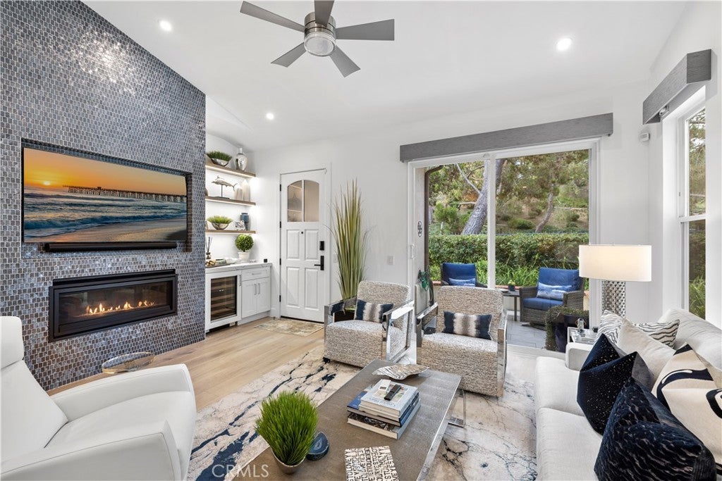 Completely renovated from the framework up, this rare, very private single-story masterpiece is a true gem. Perfectly positioned in the prime Newport Coast location of the Trovare Community, this property sets a new standard for coastal luxury. Every element of this remodel reflects master-built precision and bespoke design, offering an unmatched standard in the neighborhood. Walls have been moved to create an airy, open layout, and every inch has been finished with uncompromising quality and designer craftsmanship. The chef’s kitchen is a showstopper featuring custom illuminated floor-to-ceiling cabinetry with pull-out shelves, Sub-Zero refrigeration, a Wolf range, quartz waterfall countertops, a whole-home Life Source water filtration system, and RO filtration at the sink. An expanded layout with lowered counters offers effortless flow, complemented by smooth-finish walls, wide-plank wood floors, 6” baseboards, and custom lighting throughout, including all-new LED fixtures. A stylish bar with a Sub-Zero wine fridge makes entertaining effortless, while the striking custom fireplace wall adorned with unique floor-to-ceiling tile serves as a dramatic focal point. Every closet in the home has been custom-built out, maximizing storage and organization. The primary closet is a designer’s dream with dual hampers, jewelry drawers, and pull-out hangers.A Lutron lighting system with Control4 smart home integration allows you to manage lighting, climate, and doors from anywhere. Additional luxuries include integrated electrical for motorized shades, Hansgrohe and Rohl fixtures, Toto Washlet toilets, lighted Robern mirrors and medicine cabinets, steelcase custom vents, and screwless outlets. The attached 2 car garage is equally refined with custom cabinetry, mica-finished epoxy floors, and a reconstructed door with new rails, racks, and springs. Both patios have been beautifully finished with new tile and feature a custom gate for added style and privacy. Residents enjoy a community pool and spa, plus exclusive membership to the private Coastal Canyon Club—offering BBQ and picnic areas, tennis and sports courts, an Olympic-size pool, spa, cabanas, and clubhouse. Ideally located just minutes from John Wayne Airport, Crystal Cove, Pelican Hill Resort, world-class beaches, upscale shopping, and fine dining. Live steps away from boating, golfing, surfing, SUP, hiking, biking, and more.